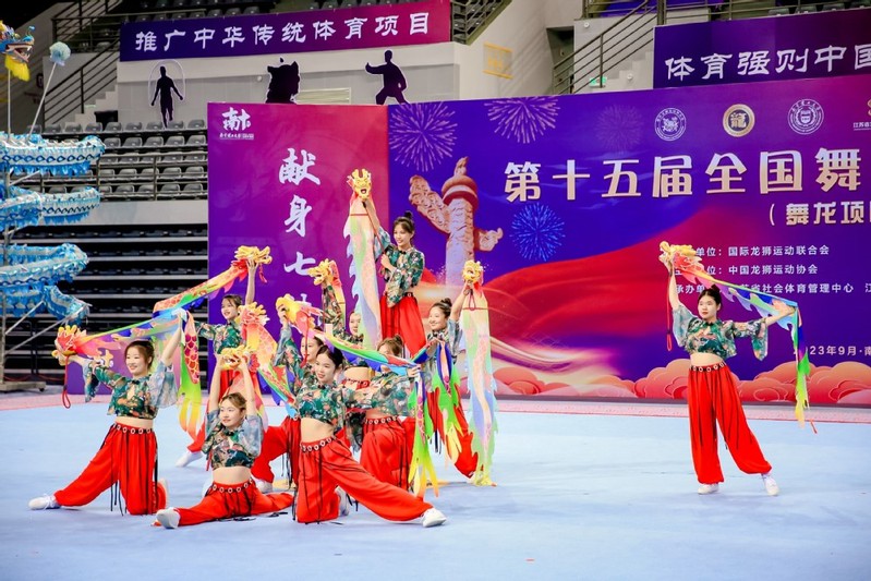 第十五屆全國舞龍舞獅錦標賽是面向全國、專業度最高、設項最全的國家級A類賽事。本屆錦標賽設舞龍、南獅、北獅、彩帶龍、創意龍獅五個大項18個小項,分舞龍和舞獅兩大賽區進行角逐。舞龍項目比賽吸引了全國19個省(市、區)共1000余人參賽。