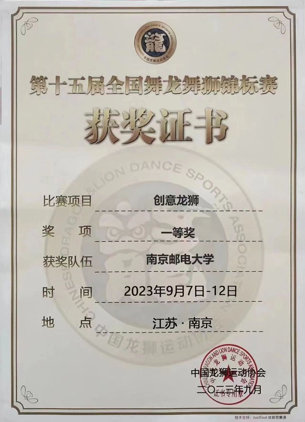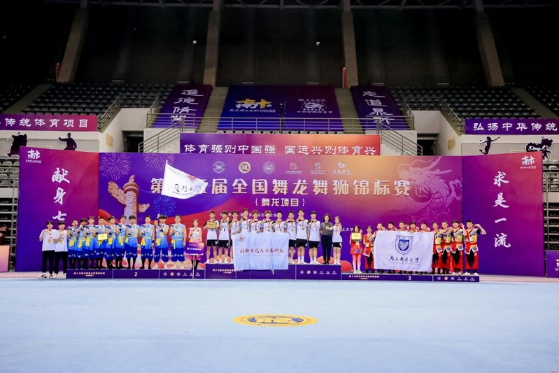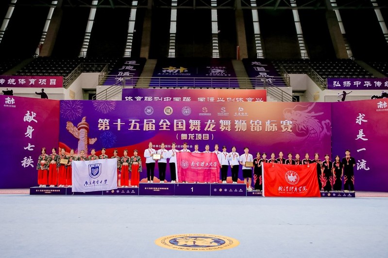 9月9日—12日,第十五屆全國舞龍舞獅錦標賽(舞龍項目)在南京舉行。我校龍獅團創意龍獅項目獲得全國一等獎,健身龍舞自選套路獲得第二名,男子舞龍自選(混合組)獲得第三名。