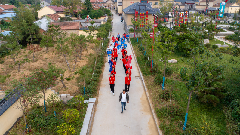 “齊魯烽火,戰郵發祥,金陵春潮,譜寫華章。”領隊同學高舉校旗,師生們手拿國旗,齊唱校歌,以辦學舊址為起點,踏著先烈的足跡,環繞東甘霖村,重走南郵先輩們走過的路。飄揚的旗幟,自豪的歌聲,整齊的步伐,師生們以飽滿的精神狀態在行走中感悟先輩們的初心使命,在行走中堅定理想信念。這是時空的碰撞交織,大家一同走向終點,前赴后繼的南郵人用自強不息的精神賡續華章。“在任校史講解員的三年時間中,我一直期待能親身感受先輩們走過的‘南郵路’,親眼看到講解詞中無數次提到的辦學舊址。今天,我和同學們一路高歌前行,眾多熟悉的校史記憶在我的腦海翻騰,真切地感悟著南郵之魂。”傳媒與藝術學院2020級本科生姚瑤激動地說。
