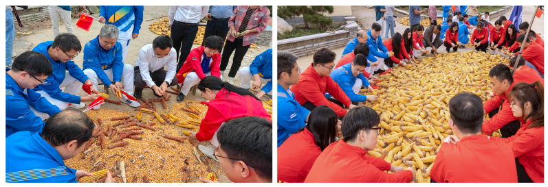 師生一起剝玉米
