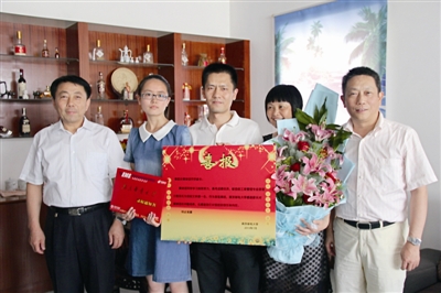“文科類、理科類、自主選拔第一名,都花落同一個地級市,在南郵歷史上還沒有遇到過。”王宗榮說,南郵也從來沒有送錄取通知書上門過。這次到泰州來,是南郵對3名優秀學子的祝賀,同時也體現了南郵對優秀人才的期盼。