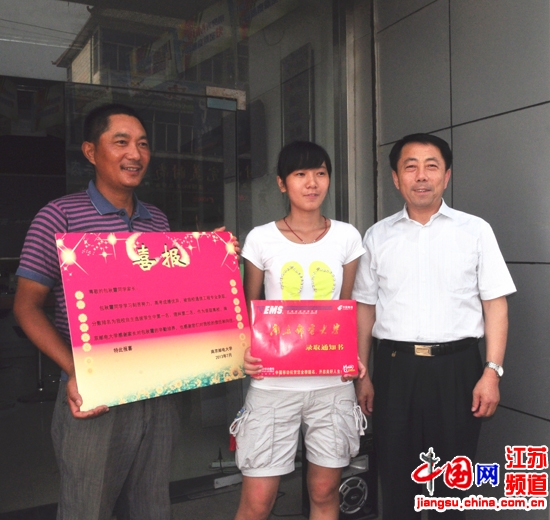 興化市顧莊的理科生包秋霞,父親是電信系統(tǒng)的一名客戶裝維工程師。受父親影響,包秋霞從小就向往“通信”,參加了南京郵電大學(xué)的自主招生考試,獲得第一名。高考也取得了376的高分,如愿被錄取到通信工程專業(yè)。中國電信泰州分公司姜輝副總經(jīng)理聽說這一消息后,也趕來祝賀。