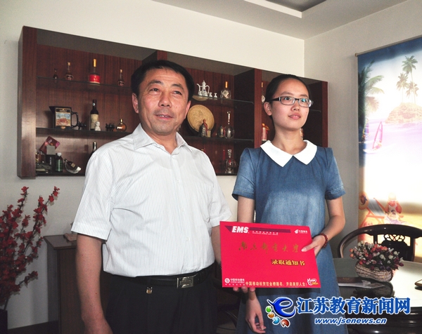 姜堰市的黃綺語成為今年南郵文科類錄取的第一名。她今年高考成績348分,被南郵經濟與管理學院工商管理專業錄取。她接過王宗榮副校長一行送來的錄取通知書后,還向老師們咨詢了課程安排等方面的情況。黃綺語說,前幾天還上南郵貼吧逛了逛,上面都說南郵學習氣氛濃厚,強化班更是學霸超多。“我感到學習上有點壓力,正在看英語四級考試的書,”她告訴記者,“聽說大學里社團很多,我想參加公益社團。”