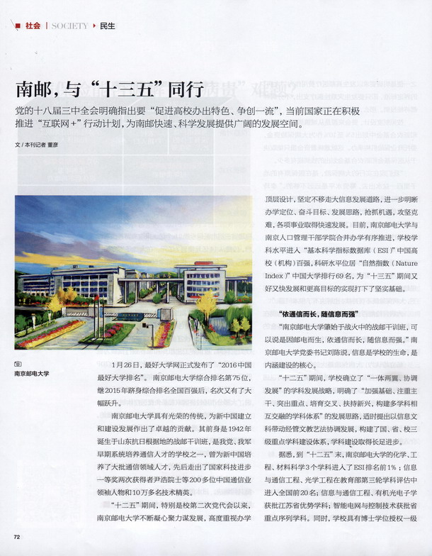 【中國報(bào)道】雜志:南郵,與“十三五”同行