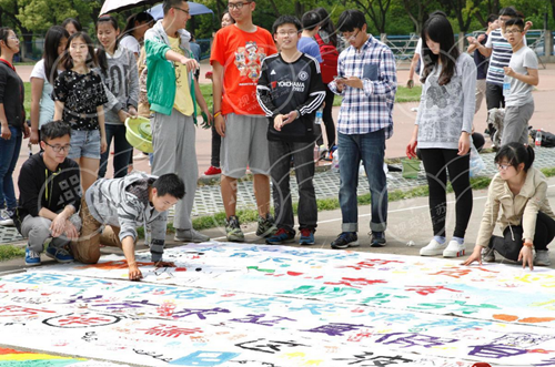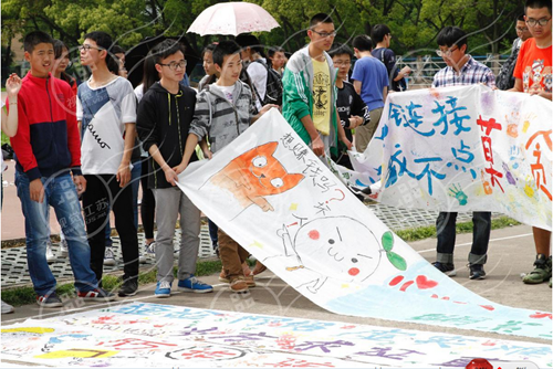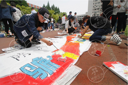 4月22日,南京郵電大學(xué)三牌樓校區(qū)操場上,管理學(xué)院的600名大一學(xué)生一起拿起畫筆,在20余條畫布上,手繪“防詐騙”主題的簡筆動(dòng)漫圖、流行語。 畫布上“詐騙的小船說來就來”“親,你可長點(diǎn)心吧!”“千里之外不見面,提防網(wǎng)絡(luò)把你騙。”“招聘廣告莫輕信,天上不會(huì)掉餡餅”等或萌或朗朗上口,過目不易忘的語句,配上五彩顏色,很吸引眼球。管理學(xué)院黨委副書記鄧艷華告訴記者,在日常的安全教育中,總感到學(xué)生入心淺,入腦淺。這次讓大一學(xué)生都來參與手繪,就是想用學(xué)生喜愛的活動(dòng)方式達(dá)到教育的效果。“我們班設(shè)計(jì)了短信詐騙,兼職詐騙,二維碼詐騙等板塊”“我們班是精細(xì)化分工的”,“我們昨晚討論到很晚,還用鉛筆打好了底稿。”同學(xué)們在現(xiàn)場忙得不亦樂乎,很多人手上沾滿了顏料,但那些宣傳的句子也被記住了。現(xiàn)場以班級(jí)為小組的手繪活動(dòng)進(jìn)行了一個(gè)小時(shí)。