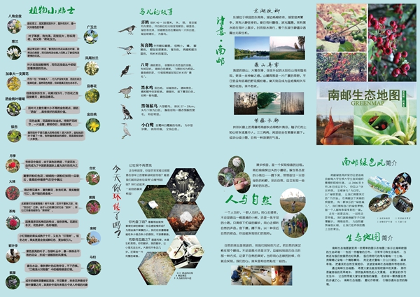 項(xiàng)目從去年10月份開(kāi)始,到前不久完成,花了半年時(shí)間。24名同學(xué)分成6個(gè)觀察小組,常常會(huì)在一個(gè)地方蹲守上兩個(gè)多小時(shí),冬天也不例外。去年11月,他們?cè)趫D書(shū)館前空曠的草地上看見(jiàn)一種鳥(niǎo),起初以為是喜鵲,拍了照片后發(fā)現(xiàn)它的尾巴明顯比喜鵲的短。再觀察,聽(tīng)到它發(fā)出的叫聲如金屬撞擊般。經(jīng)過(guò)數(shù)月的觀察,查資料,上網(wǎng)請(qǐng)教,最終確定是黑領(lǐng)椋鳥(niǎo)?!吧蟼€(gè)月,又看見(jiàn)它了!”張瑩說(shuō)起大家的新發(fā)現(xiàn),無(wú)比興奮,“冬天黑水雞的幼崽還在湖里游呢,白鷺也會(huì)到校園里來(lái)逛一逛。還有栗子山上的“金絲桃”花,溫暖的黃色,如金絲般細(xì)長(zhǎng)的花蕊,只有一小簇,便也妍麗奪目?!?br /> 完成了前期觀察,項(xiàng)目組的同學(xué)們?yōu)榱酥谱麟娮由鷳B(tài)地圖,自學(xué)PS和版面設(shè)計(jì),幾乎每晚熬到凌晨2點(diǎn)也無(wú)怨無(wú)悔。“我們希望能讓大家發(fā)現(xiàn)自然中的美,喜歡大喜然,共同愛(ài)護(hù)大自然。”綠色風(fēng)環(huán)保協(xié)會(huì)的同學(xué)用他們的行動(dòng)傳遞著環(huán)保的理念。校園生態(tài)地圖還配了一頁(yè)說(shuō)明,上面有“植物小貼士”介紹了校園里盛開(kāi)的花朵,“鳥(niǎo)兒的故事”普及了校園中可見(jiàn)到的鳥(niǎo)兒常識(shí)。