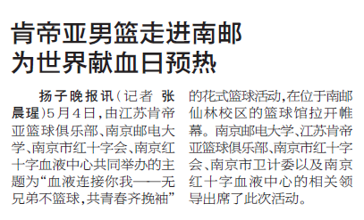 【揚子晚報】肯帝亞男籃走進南郵為世界獻血日預熱