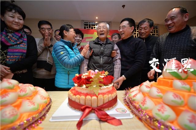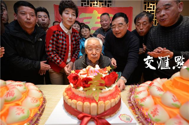 交匯點訊 2017年1月15日,老紅軍秦華禮在晚輩們的祝福下迎來105歲壽辰。