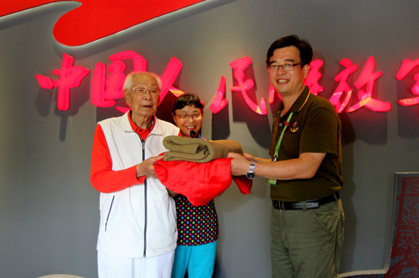 今年是紀念全民族抗戰(zhàn)爆發(fā)80周年。為支持開展國防教育,弘揚愛國熱情,7月18日上午,在南京國防園“中國人民解放軍軍史館”開館儀式上,105歲老紅軍、南京郵電學(xué)院首任黨委書記兼院長秦華禮向南京國防園慷慨捐贈珍藏了七十多年的抗戰(zhàn)文物兩件,并為軍史館開館揭幕。