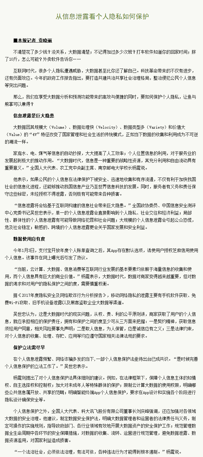 【中國科學報】頭版:從信息泄露看個人隱私如何保護