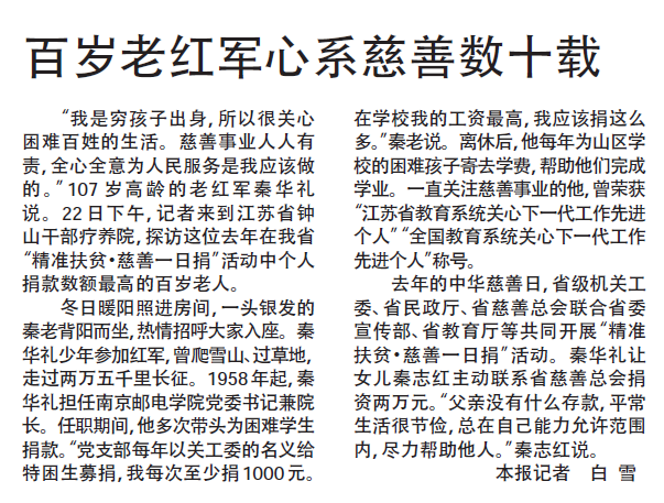 【新華日報】百歲老紅軍心系慈善數十載