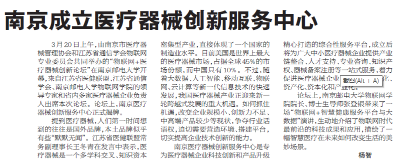 【揚子晚報】南京成立醫(yī)療器械創(chuàng)新服務(wù)中心
