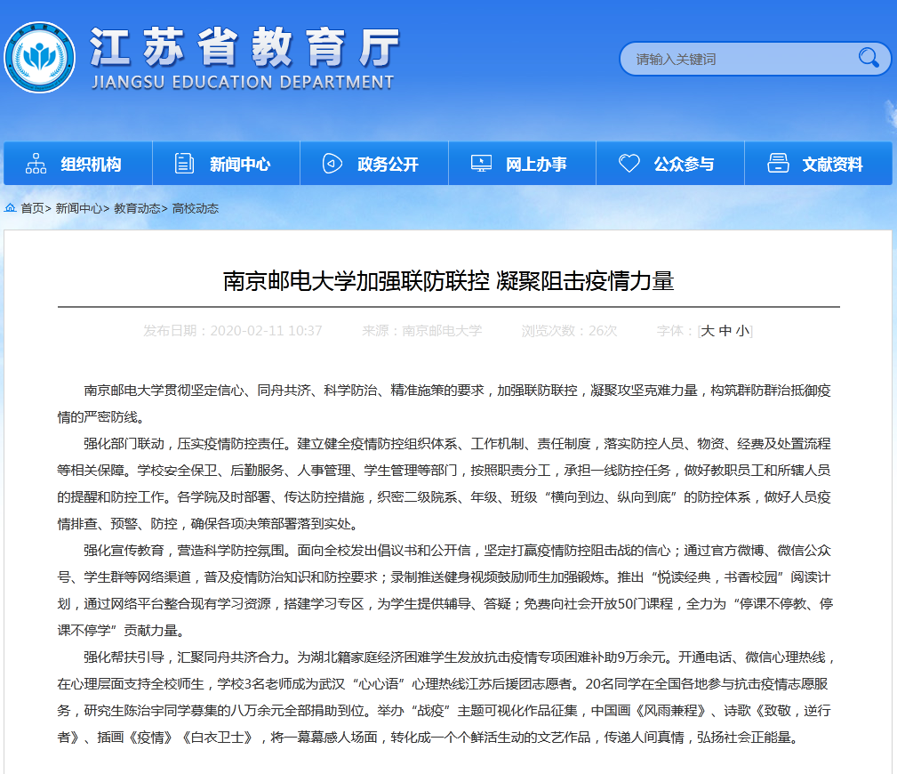 【江蘇教育】南京郵電大學加強聯防聯控 凝聚阻擊疫情力量