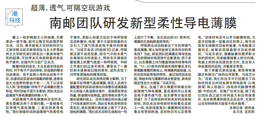 【新華日報】南郵團隊研發新型柔性導電薄膜