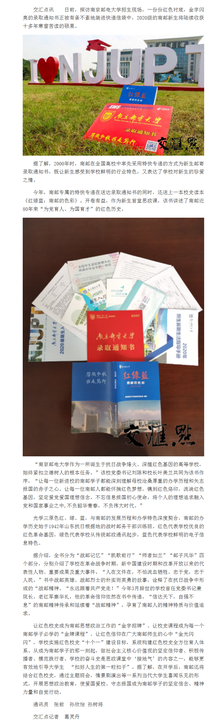 【新華日報(bào)客戶端】紅綠藍(lán)?新生首堂思政課“裝”進(jìn)了錄取通知書!