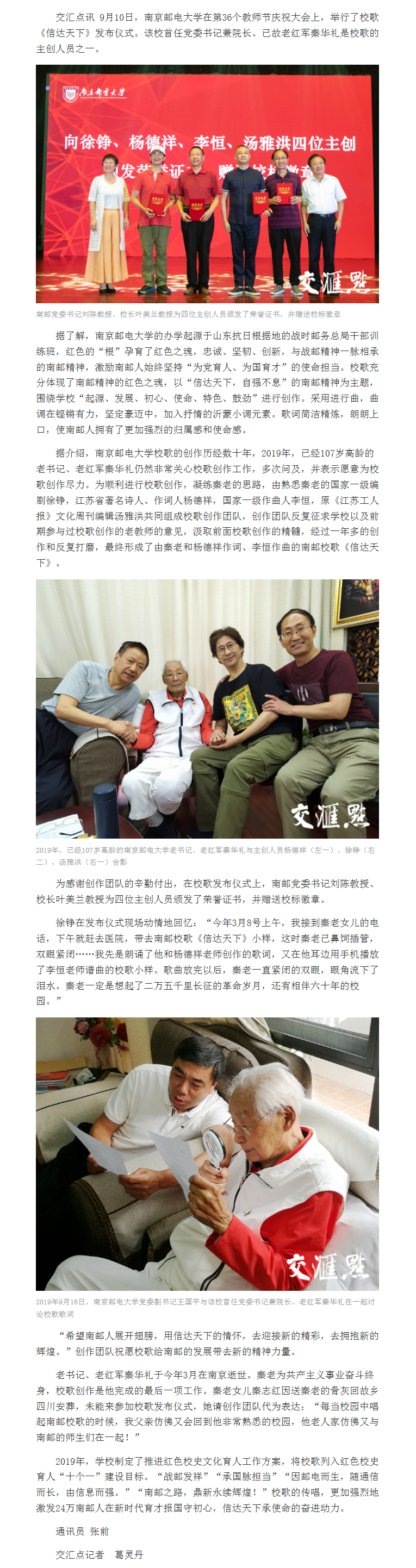 【新華日報客戶端】已故老紅軍創(chuàng)作的南郵校歌今日發(fā)布