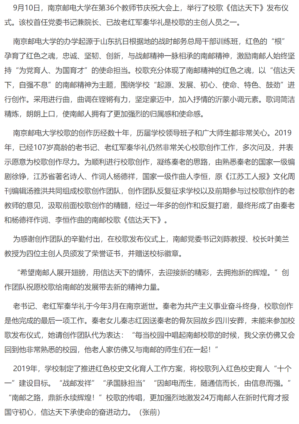 【新華網(wǎng)】南郵校歌《信達(dá)天下》發(fā)布