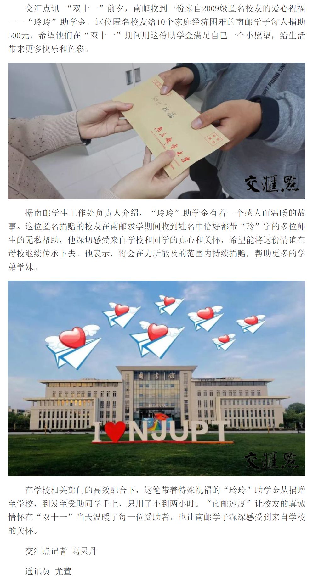 【新華日報客戶端】南郵“匿名助學金” 為他們送上愛心祝福