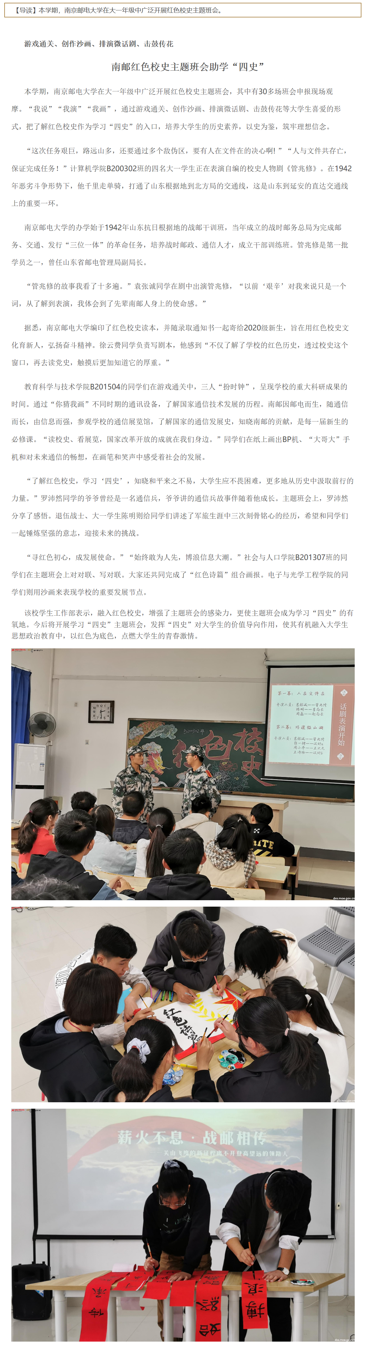 【中國大學生在線】南郵紅色校史主題班會助學“四史”