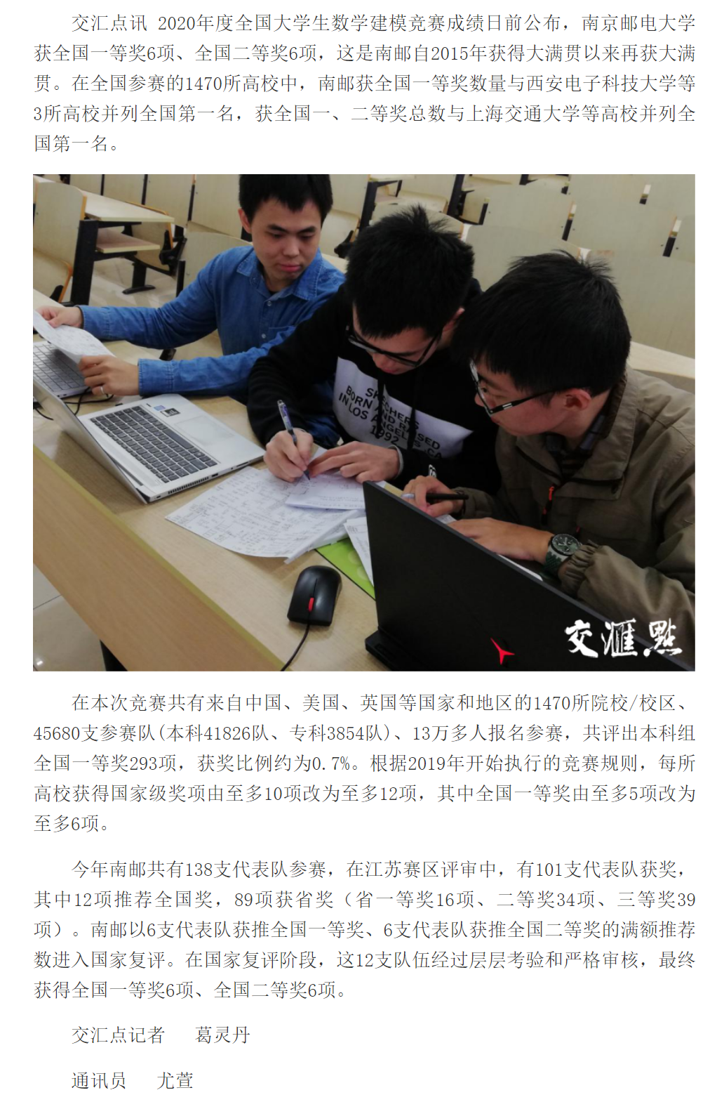 【新華日報客戶端】南郵獲全國第一!數模競賽獲獎數量領跑千所高校
