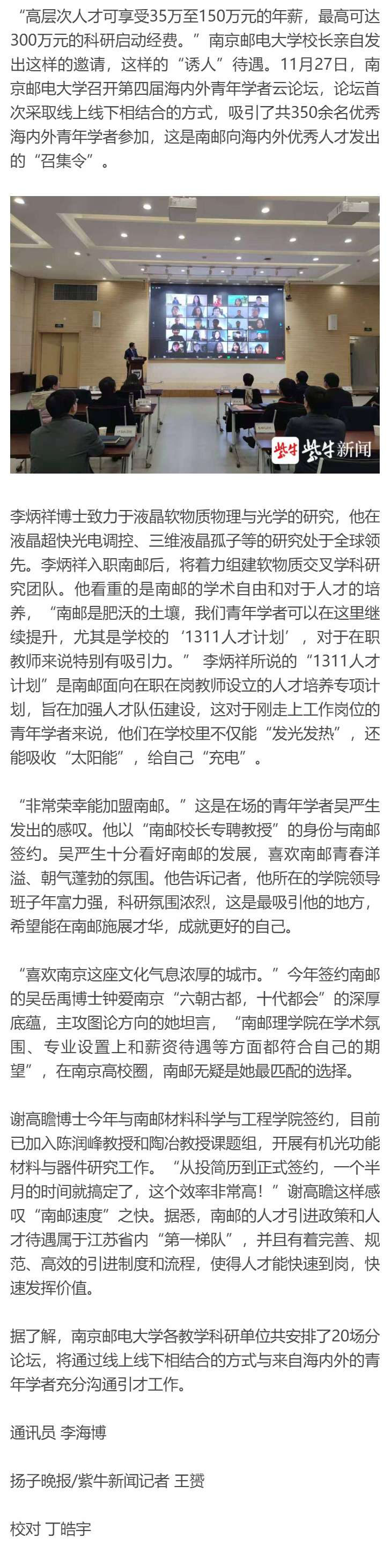 【揚子晚報客戶端】百萬年薪!南郵向海內外優秀人才發出“召集令”