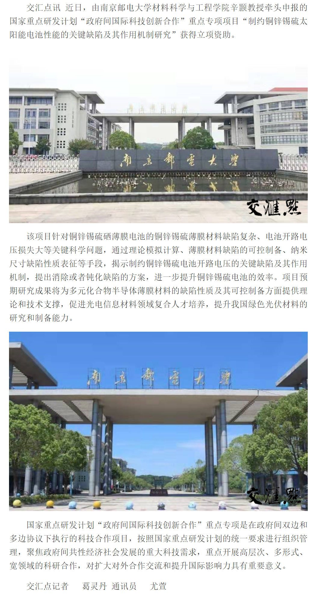 【新華日報客戶端】南郵獲批國家重點研發計劃“政府間國際科技創新合作”重點專項項目
