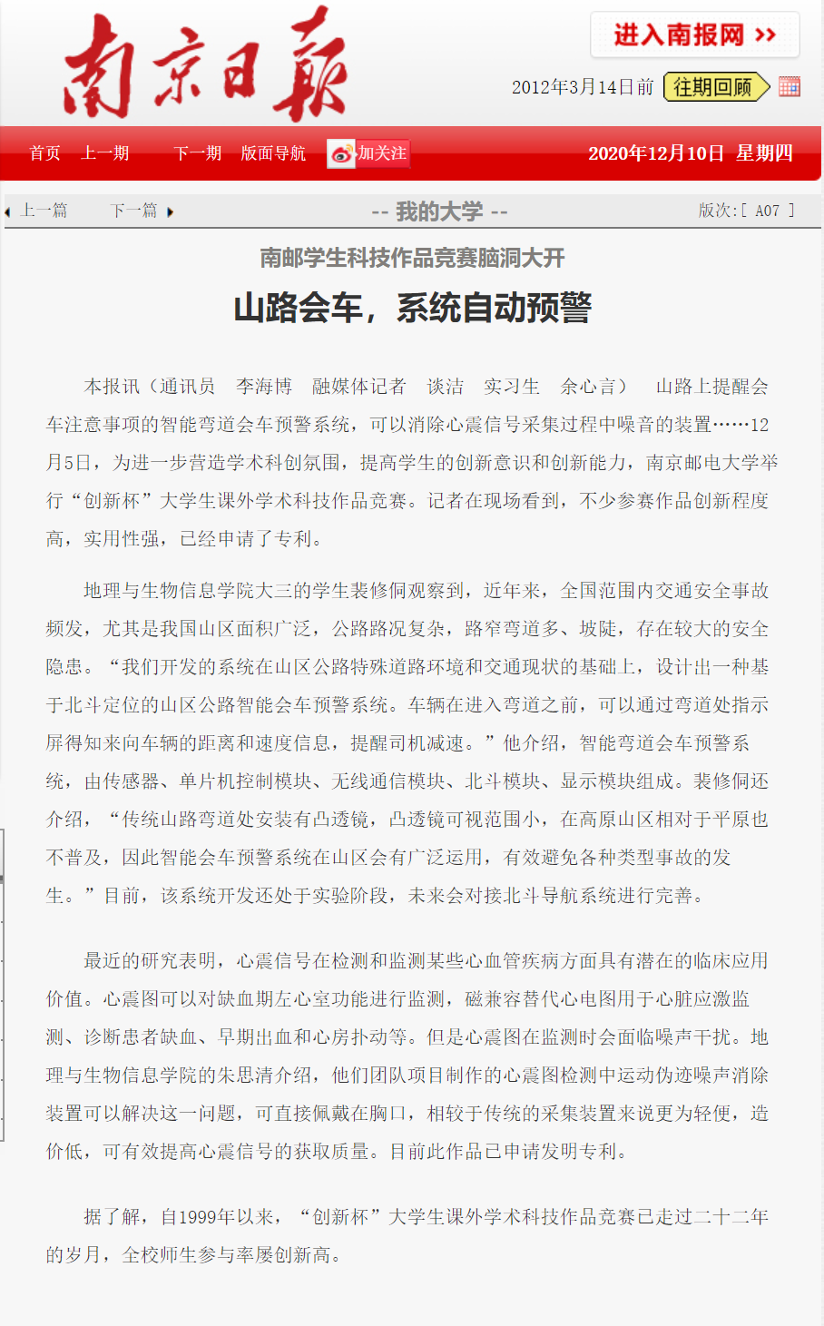 發布時間:2020-12-10 瀏覽次數:2920 文章來源:2020年12月10日《南京日報》A07版