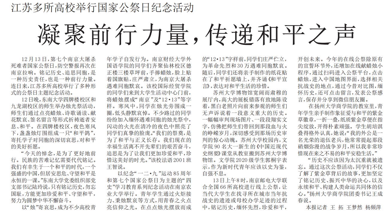 【新華日報(bào)】凝聚前行力量,傳遞和平之聲