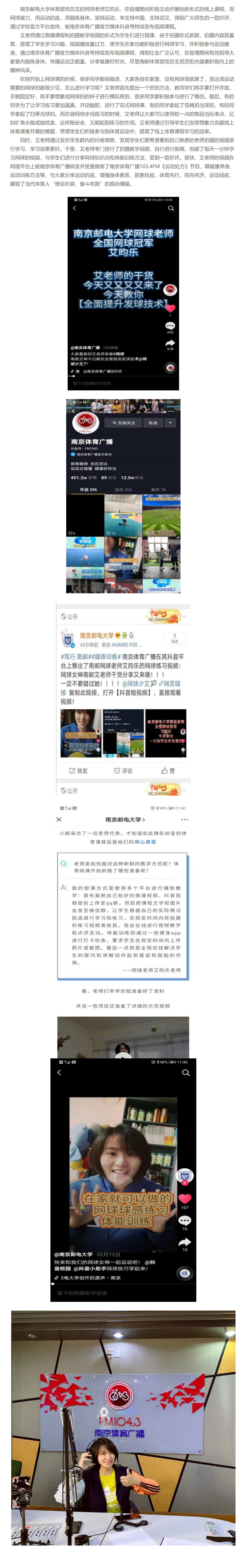 【全國高校思想政治網】艾昀樂老師的線上網球課——南京郵電大學體育部黨總支