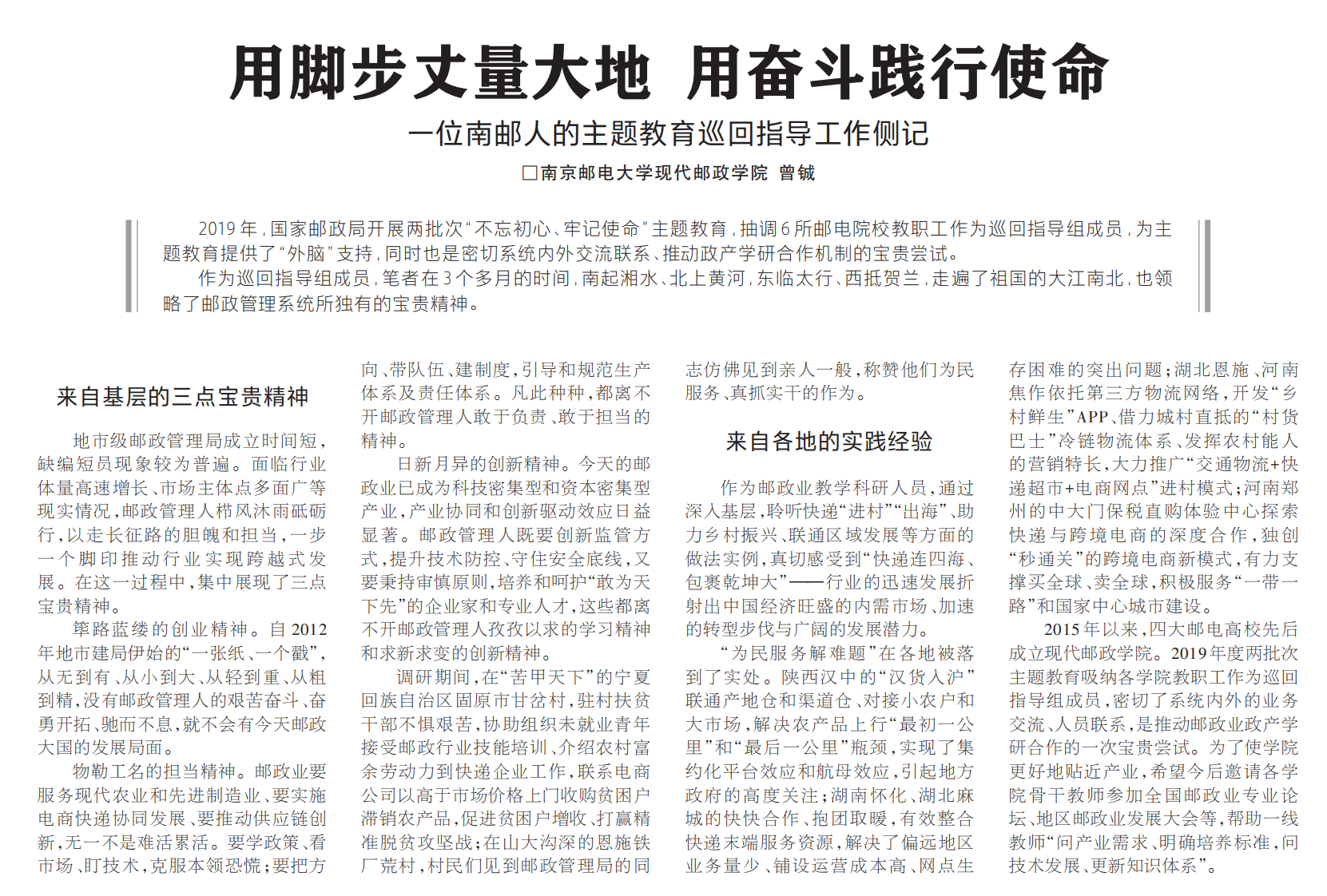【中國郵政快遞報】用腳步丈量大地 用奮斗踐行使命