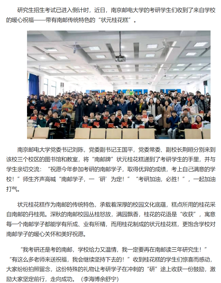 【中國江蘇網】考研加油!南郵為考研學子送上定制桂花糕