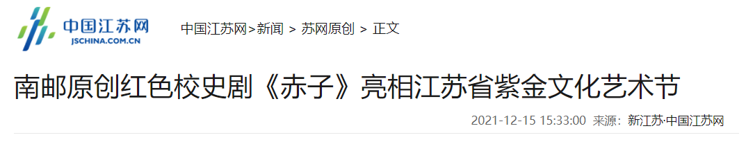【中國(guó)江蘇網(wǎng)】南郵原創(chuàng)紅色校史劇《赤子》亮相江蘇省紫金文化藝術(shù)節(jié)