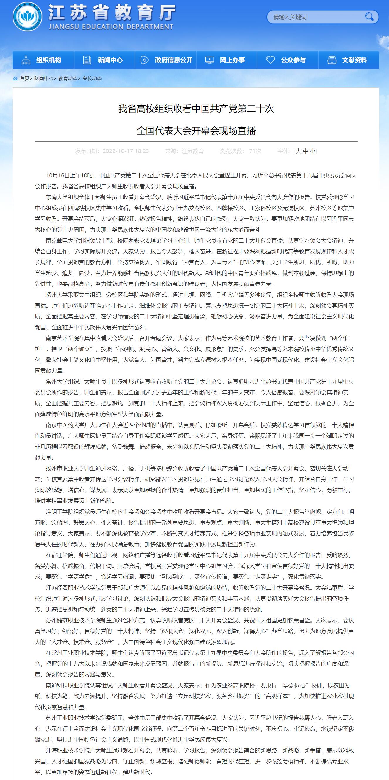 【省教育廳官網】我省高校組織收看中國共產黨第二十次全國代表大會開幕會現場直播