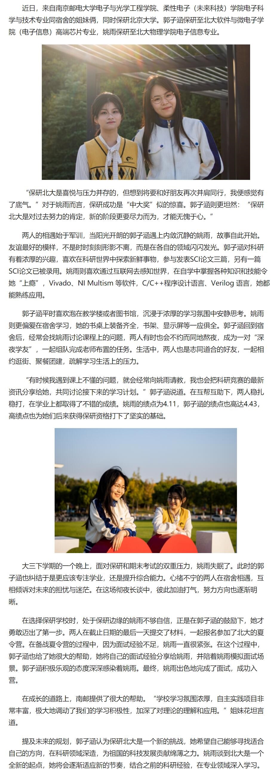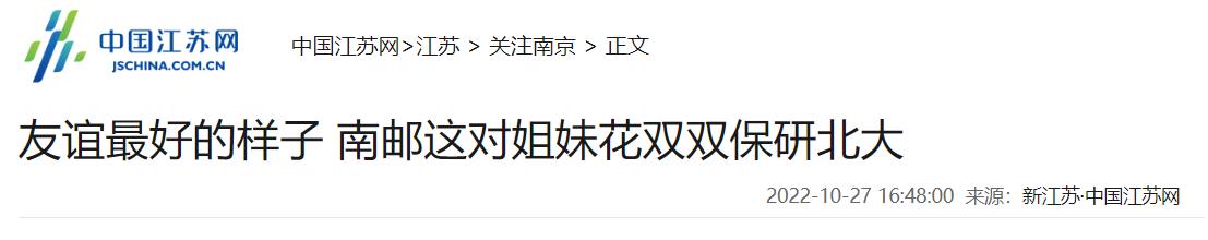 【中國江蘇網】友誼最好的樣子 南郵這對姐妹花雙雙保研北大