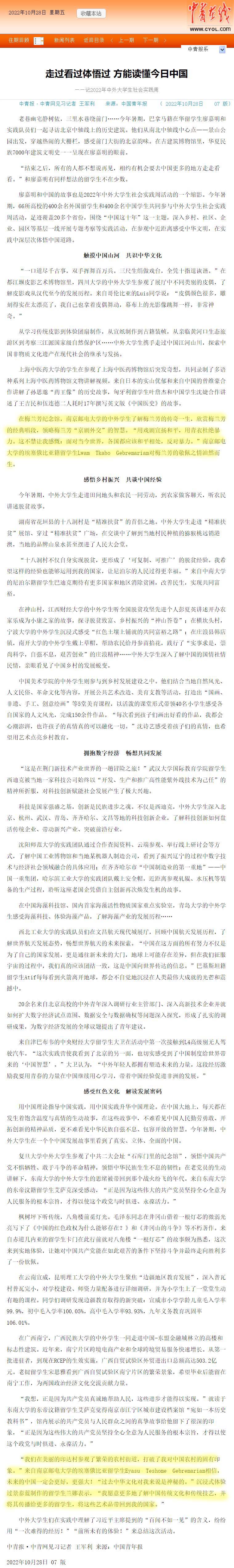 【中國青年報】走過看過體悟過 方能讀懂今日中國