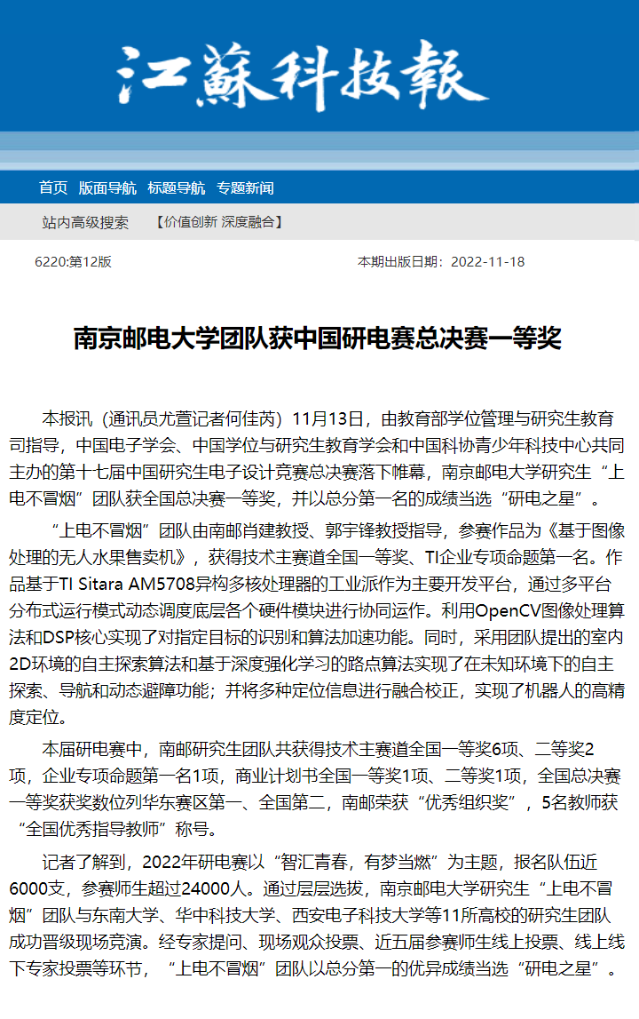 【江蘇科技報】南京郵電大學團隊獲中國研電賽總決賽一等獎