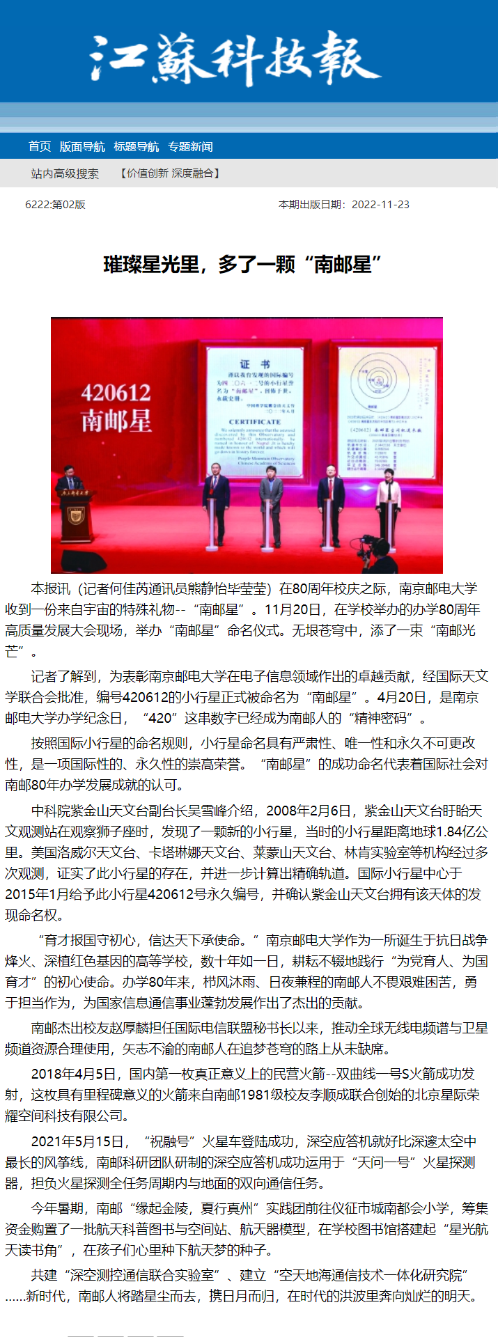 【江蘇科技報】璀璨星光里,多了一顆“南郵星”