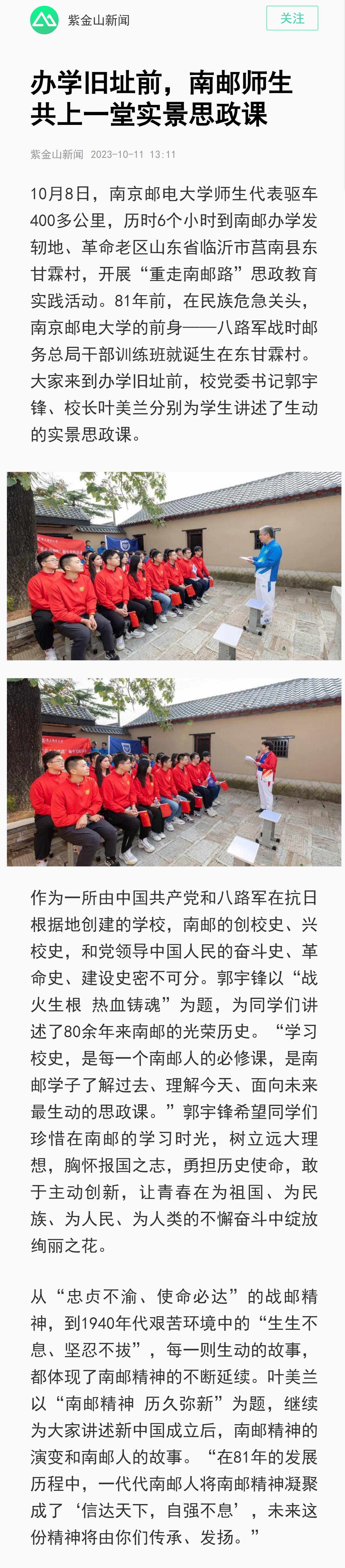 【南京日報客戶端】辦學舊址前,南郵師生共上一堂實景思政課