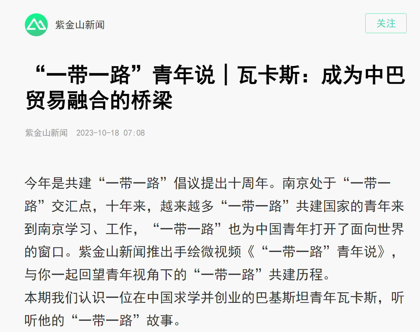【南京日?qǐng)?bào)客戶端】“一帶一路”青年說│瓦卡斯:成為中巴貿(mào)易融合的橋梁