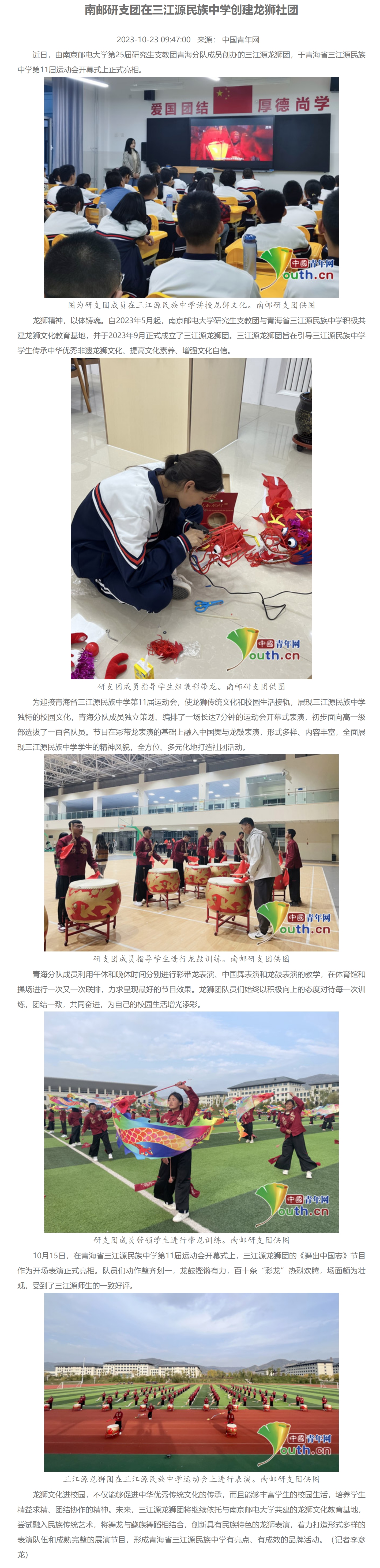 【中國青年網】南郵研支團在三江源民族中學創建龍獅社團