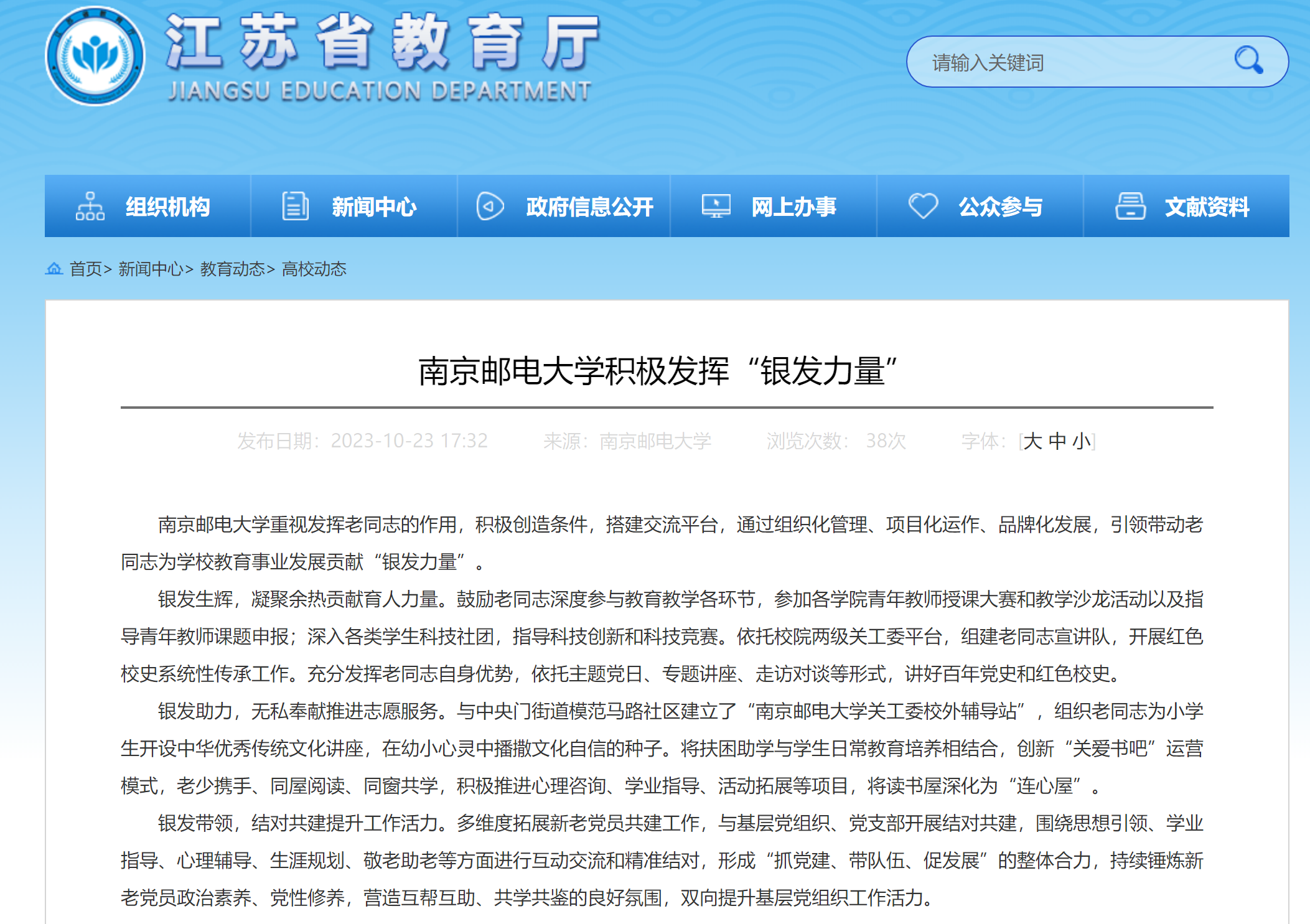 【省教育廳官網】南京郵電大學積極發揮“銀發力量”