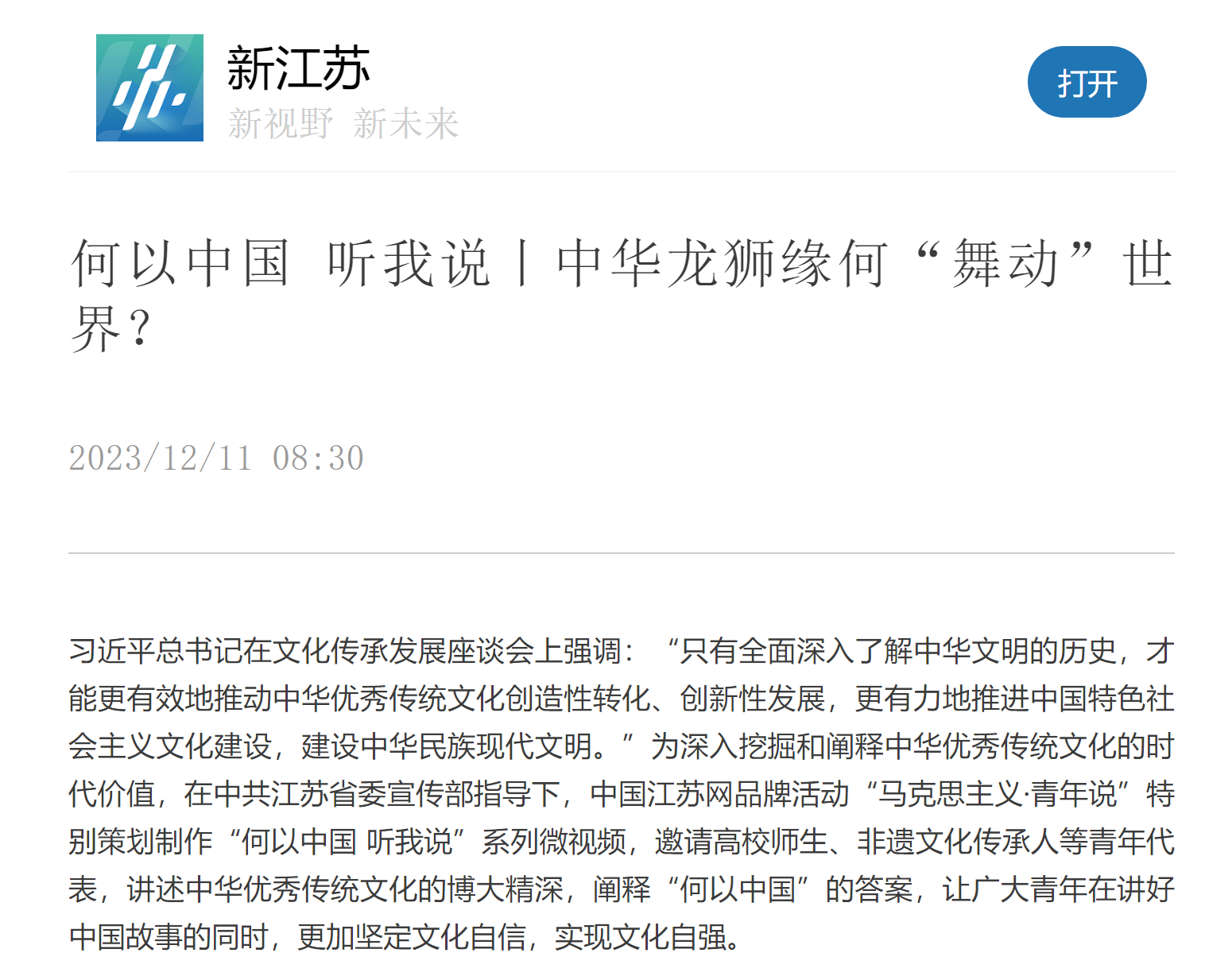 【新江蘇客戶端】何以中國 聽我說丨中華龍獅緣何“舞動”世界?