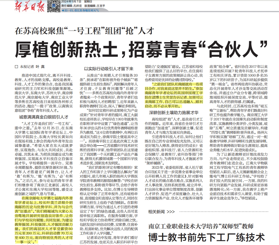 【新華日報】厚植創新熱土,招募青春“合伙人”