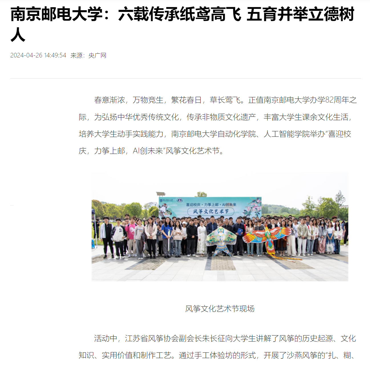 【央廣網】南京郵電大學:六載傳承紙鳶高飛 五育并舉立德樹人