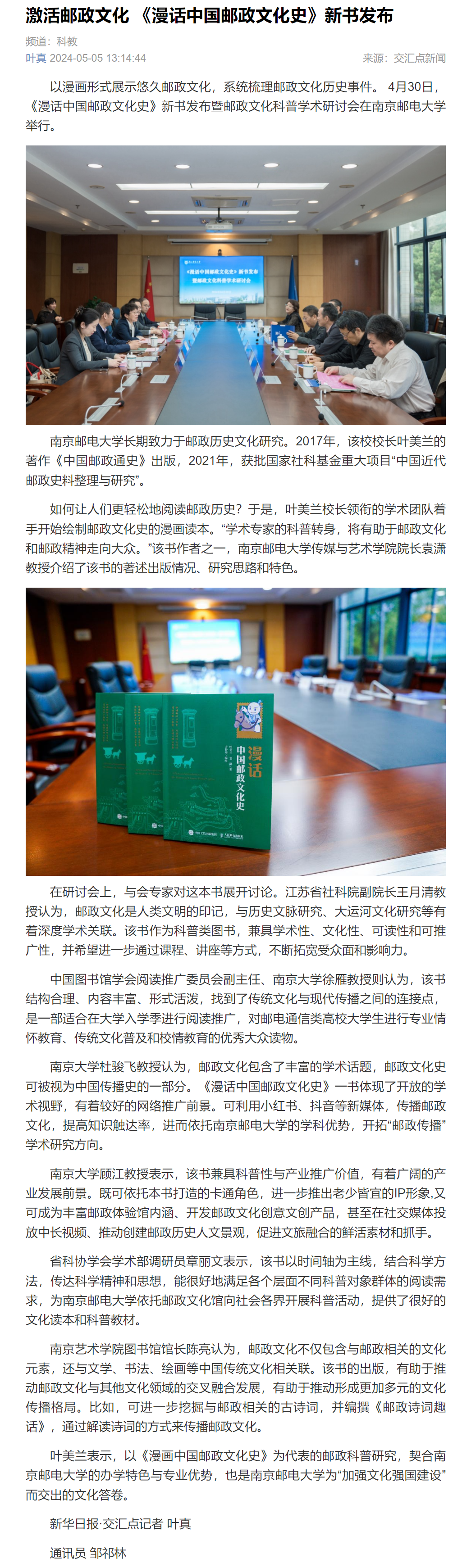 【新華日報客戶端】激活郵政文化 《漫話中國郵政文化史》新書發(fā)布