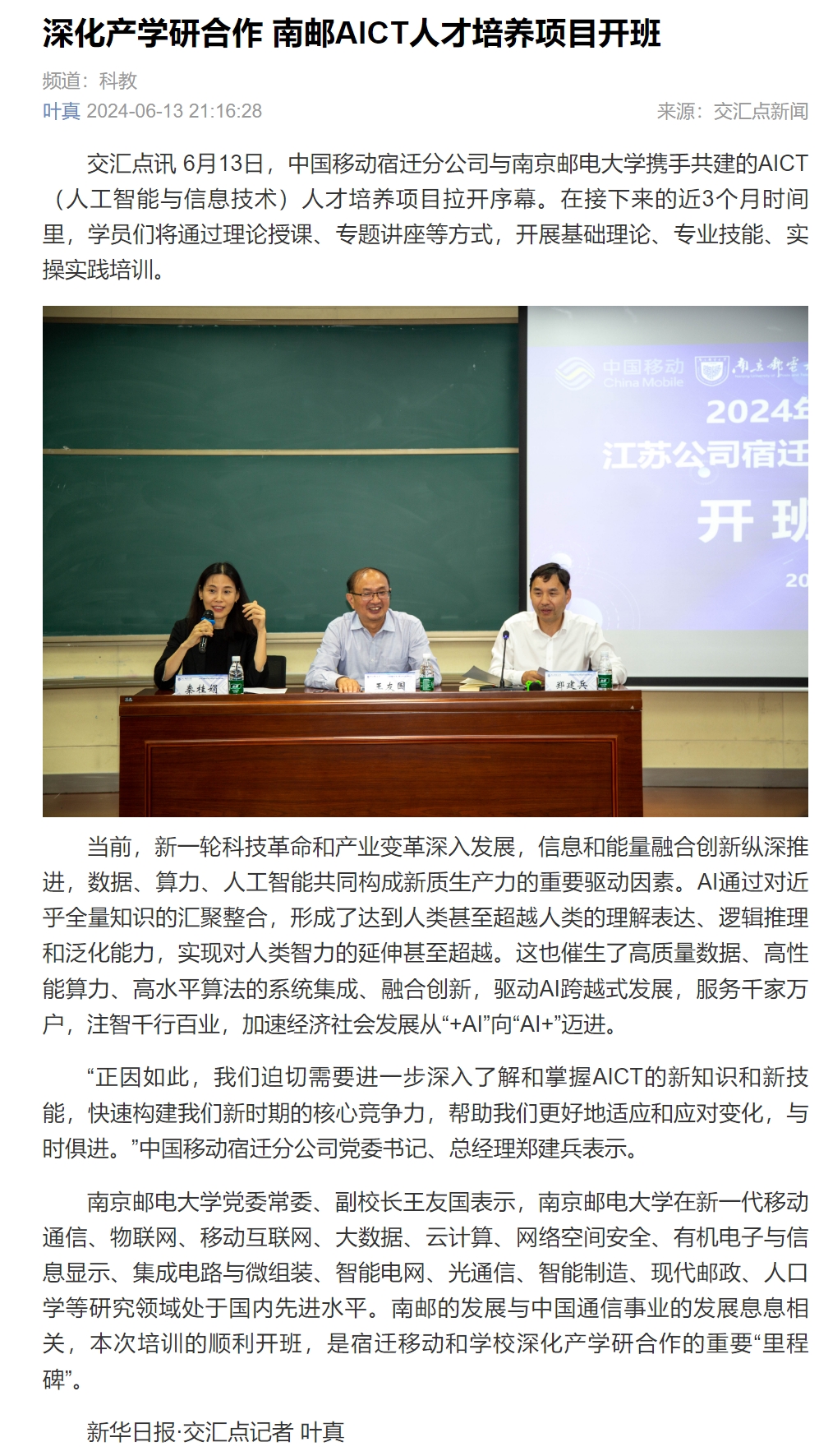 【新華日報客戶端】深化產學研合作 南郵AICT人才培養(yǎng)項目開班