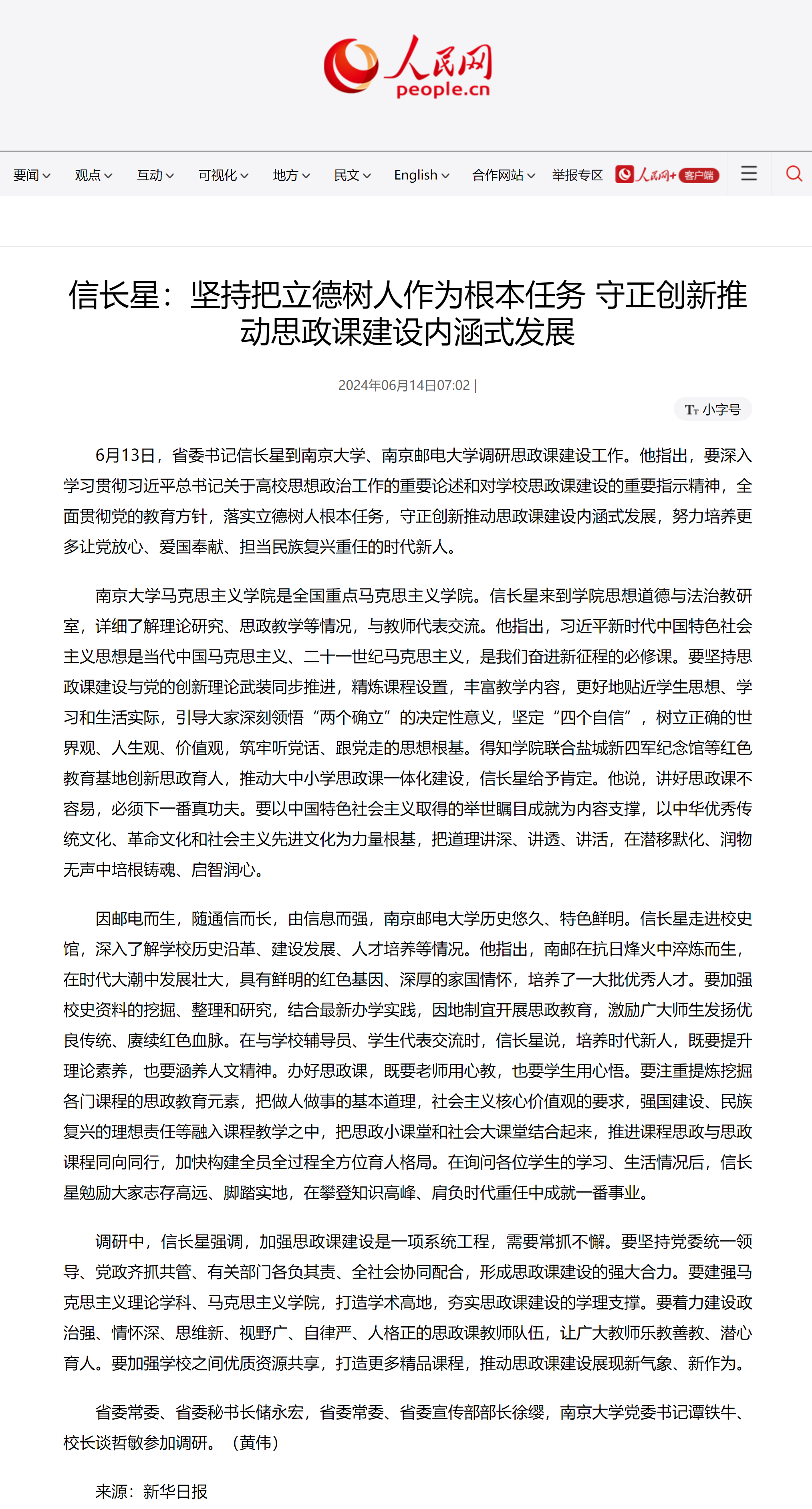 【人民網】信長星:堅持把立德樹人作為根本任務 守正創新推動思政課建設內涵式發展