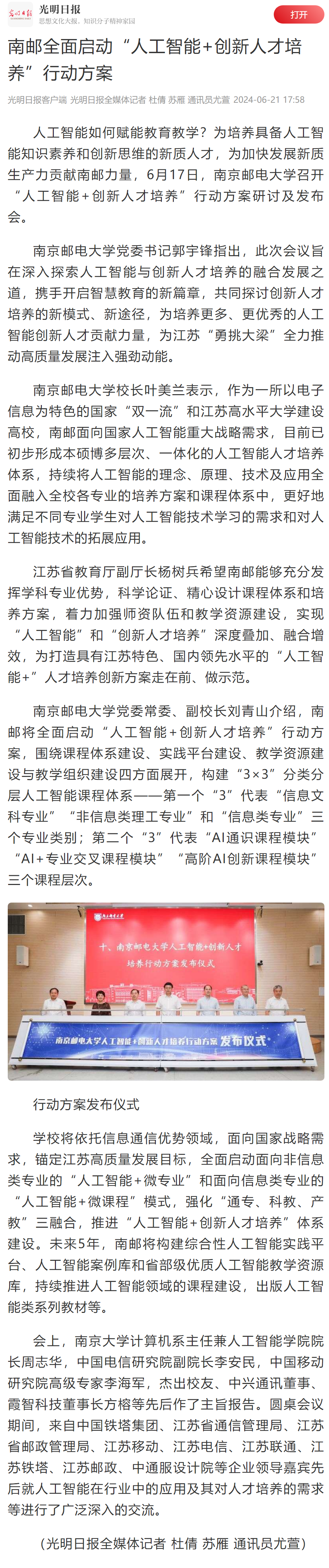 【光明日報客戶端】南郵全面啟動“人工智能+創新人才培養”行動方案