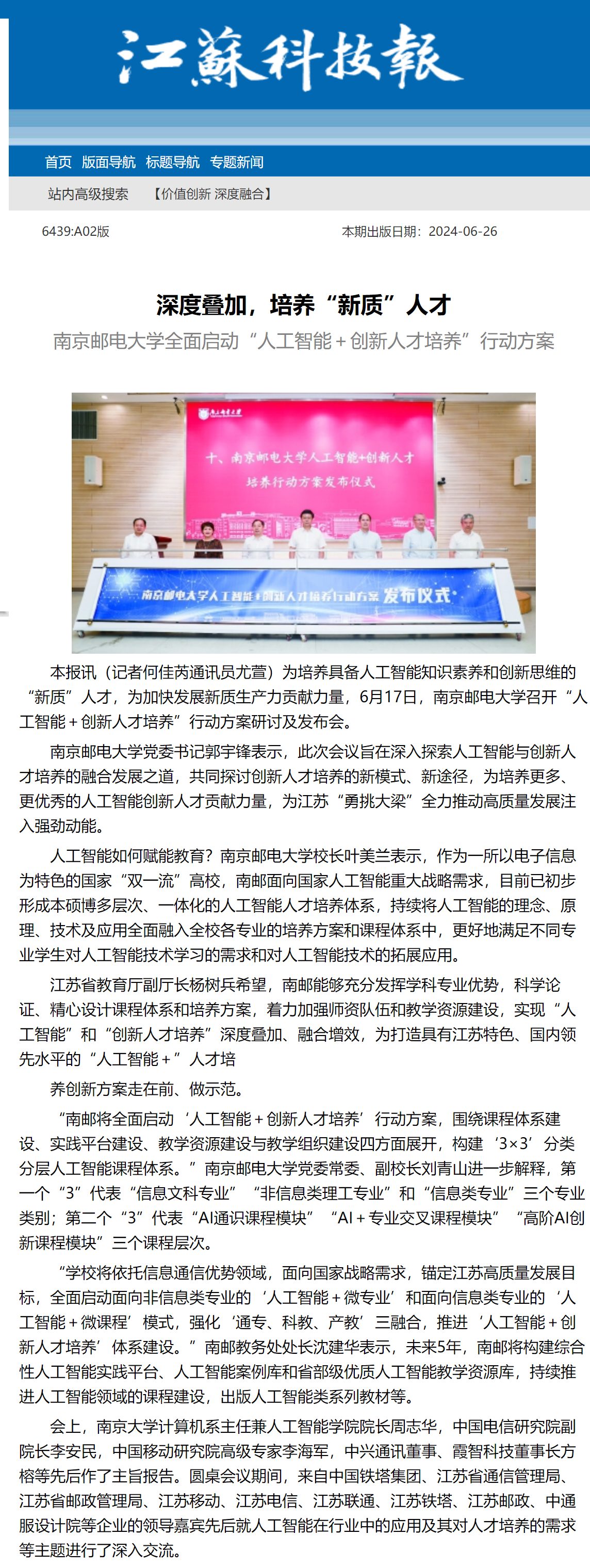 【江蘇科技報】南京郵電大學全面啟動“人工智能+創新人才培養”行動方案