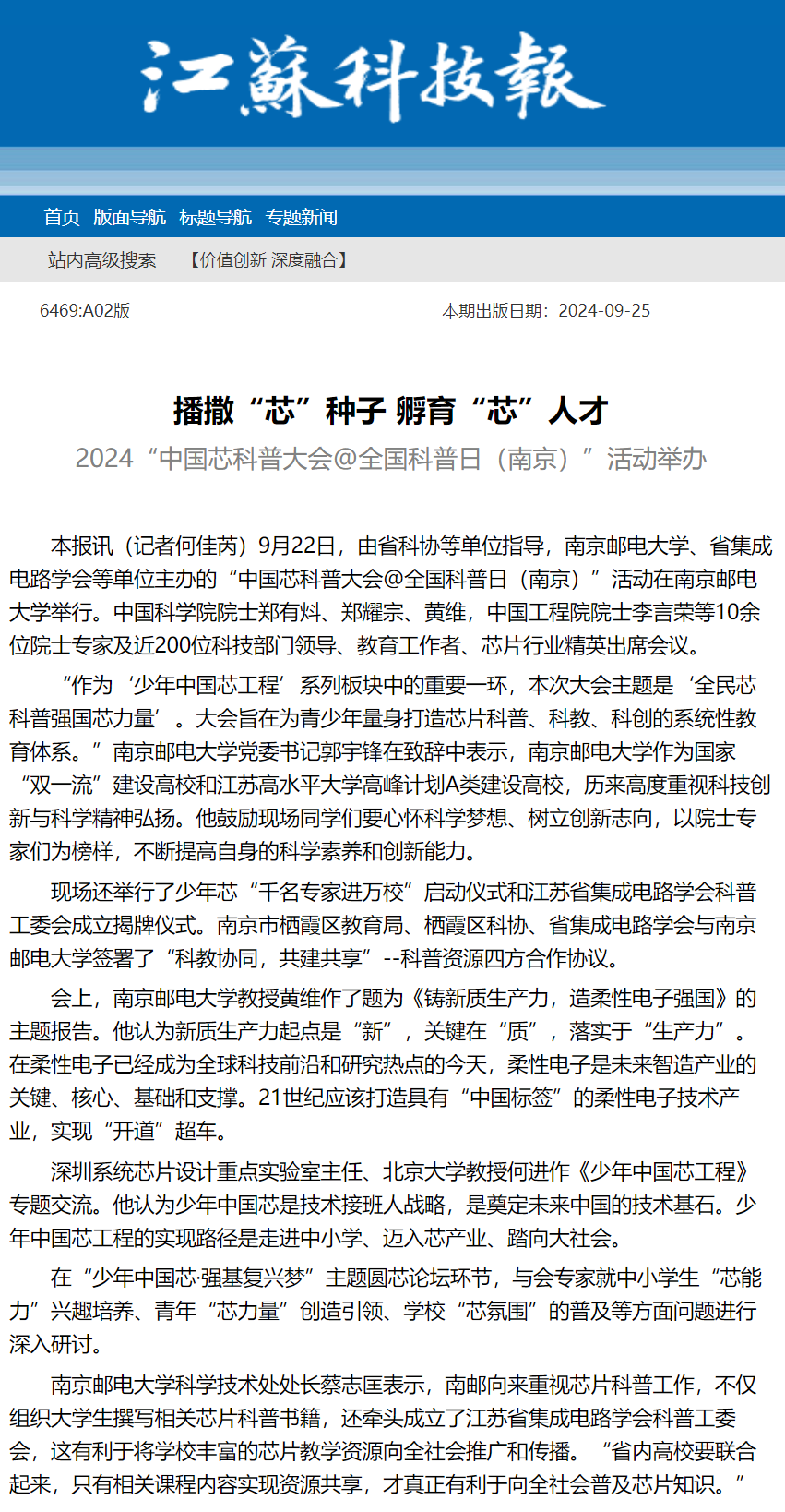 【江蘇科技報(bào)】2024“中國(guó)芯科普大會(huì)@全國(guó)科普日(南京)”活動(dòng)舉辦